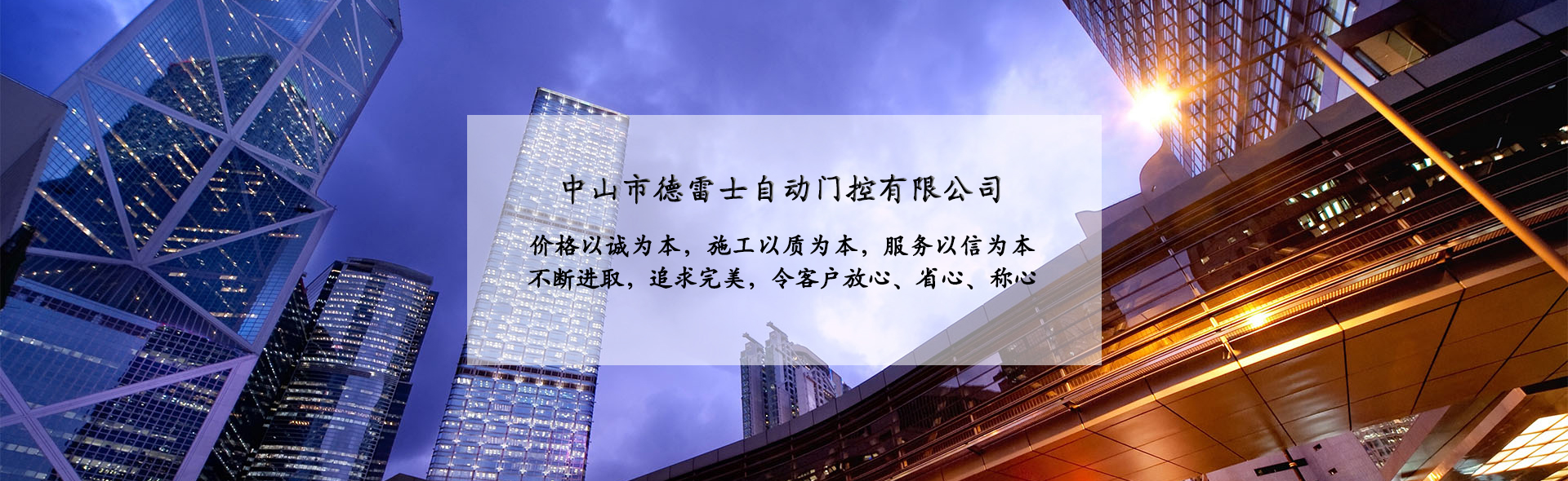 中山市德雷士自動門控有限公司代理中山松下自動門、中山松下感應(yīng)門、及其旗下品牌松下(Panasonic)自動門、旋轉(zhuǎn)門、型材門、松下門禁系統(tǒng)、地彈簧、閉門器等系列產(chǎn)品。 松下Panasonic一直致力于憑借不斷創(chuàng)新的技術(shù)營造為各個(gè)區(qū)域的用戶做出最佳解決方案,在自身領(lǐng)域處于領(lǐng)先地位;松下自動門控系統(tǒng)廣泛應(yīng)用于寫字樓、機(jī)關(guān)單位、大型企業(yè)、學(xué)校、醫(yī)院、智能小區(qū)等領(lǐng)域。在用戶心中有良好的口碑及信譽(yù)度。 松下(Panasonic)自動門控系統(tǒng)包含:自動感應(yīng)門、旋轉(zhuǎn)門、90度平開門、圓弧型門、重疊門、緊急逃生門、醫(yī)用門、氣密門、鋁合金型材門、松下門禁系統(tǒng)、家庭智能鎖、地彈簧、閉門器等系列產(chǎn)品。 德雷士自動門控有限公司從事智能門控十余載,精英匯聚;公司具有完善的管理體系,對每位客戶都進(jìn)行檔案管理,跟蹤服務(wù),定期回訪,終生維修。提供急修12小時(shí)解決,一般維修48小時(shí)解決的服務(wù),完全能解決您的后顧之憂。 公司的質(zhì)量方針 科學(xué)管理確保的工程質(zhì)量 真誠服務(wù)贏得客戶信譽(yù) 持續(xù)創(chuàng)新打造企業(yè) 公司的服務(wù)宗旨 價(jià)格以誠為本,施工以質(zhì)為本,服務(wù)以信為本。 實(shí)實(shí)在在做人,老老實(shí)實(shí)做事,以我們的辛苦換來客戶滿意的微笑,這就是我們的追求! 公司的目標(biāo) ...